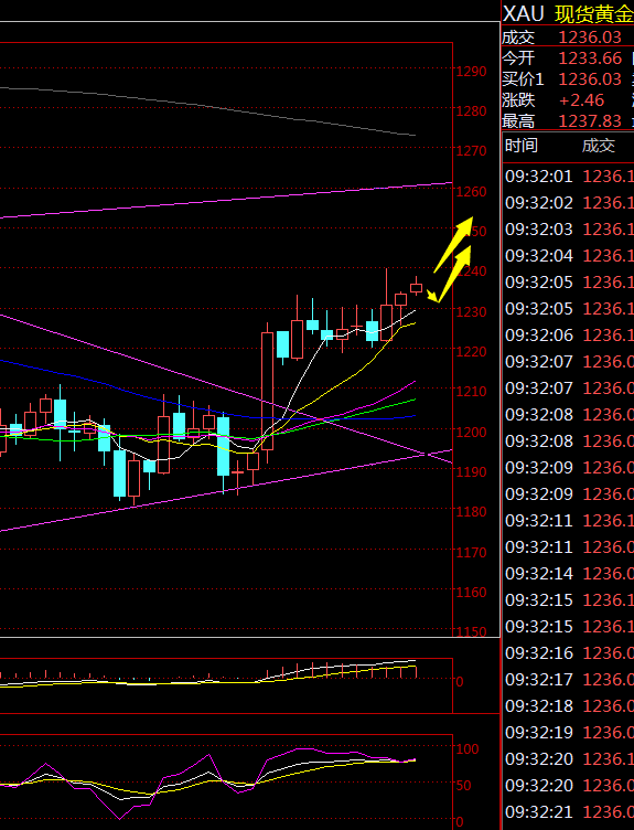 1.白天1232-1233做多,止损1229,目标1236-1240-1260-1280